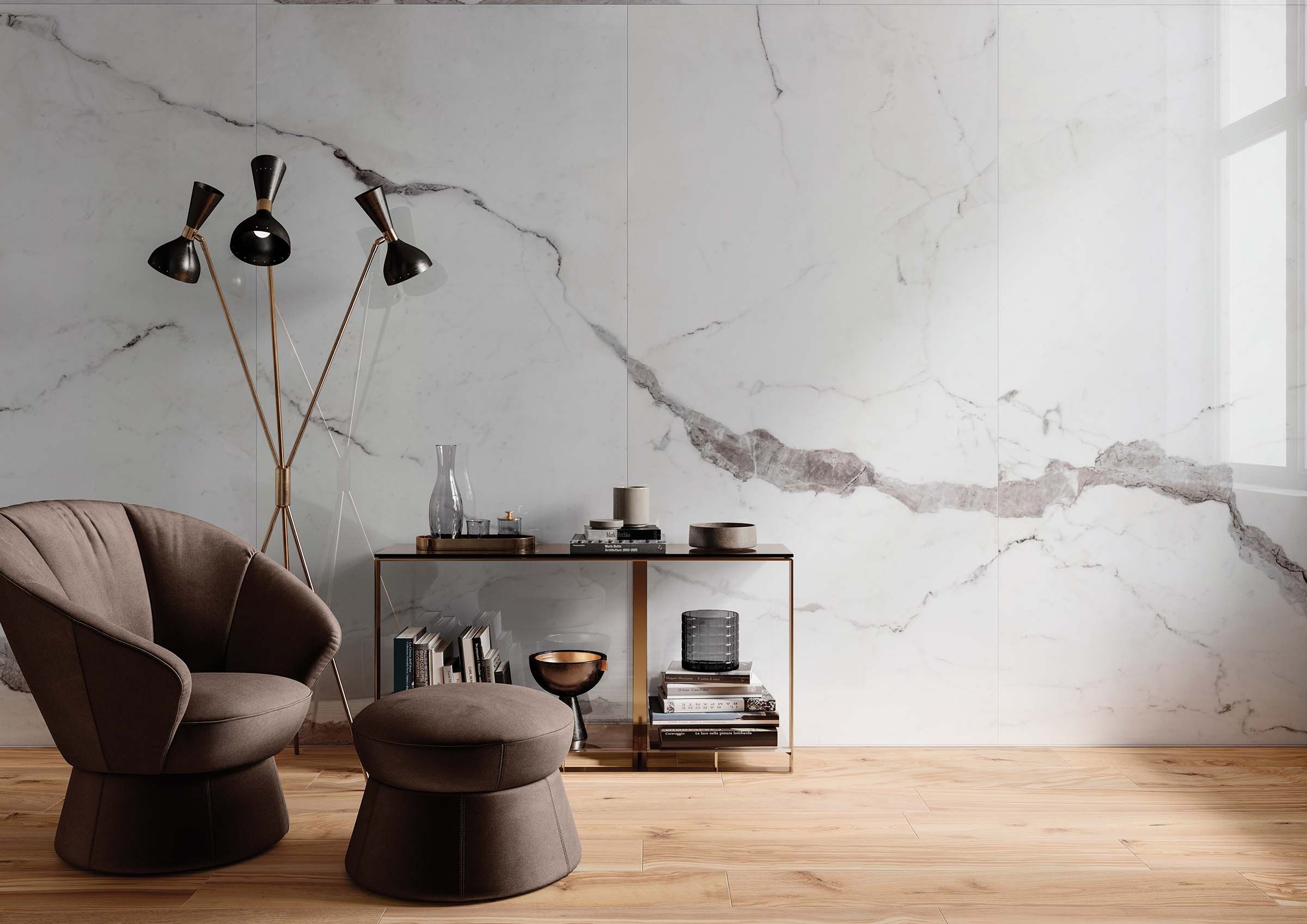 Design your luxury interiors with a timeless charm. A wide and varied range of collections inspired by the elegance of marble to offer hundreds of solutions for residential areas, hospitality industry and business places. Revised classy marble and granite patterns displaying elegant veins which remodel your spaces, creating sophisticated ambiances. When you chose a marble looking tile collection, you chose the timeless beauty of one of the finest material in nature, combining it with all the advantages of porcelain and ceramic tiles in terms of performance, durability and ease of laying and maintenance.