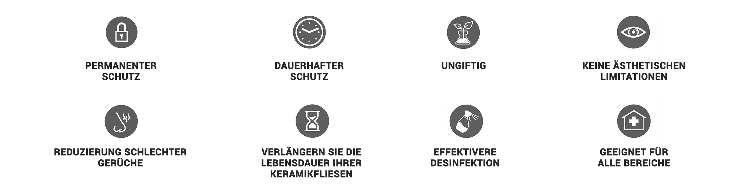 Wir empfehlen die Verwendung von antibakteriellenm Fugenmörtel, das auf dem Markt erhältlich sind, um einen sicheren Schutz auf der gesamten Oberfläche zu gewährleisten. Für die Verlegung, Reinigung und Pflege empfehlen wir, die normalen Verfahren und Hinweise zu befolgen, die in den Katalogen und Benutzerhandbüchern von Gres Porzellan-/Keramikfliesen enthalten sind. Vermeiden Sie Scheuermittel und Reinigungsmittel, die Wachse oder filmbildende Inhaltsstoffe enthalten und tragen Sie keine Harze, Wachse oder Schutzmittel auf.