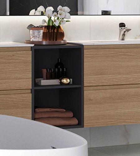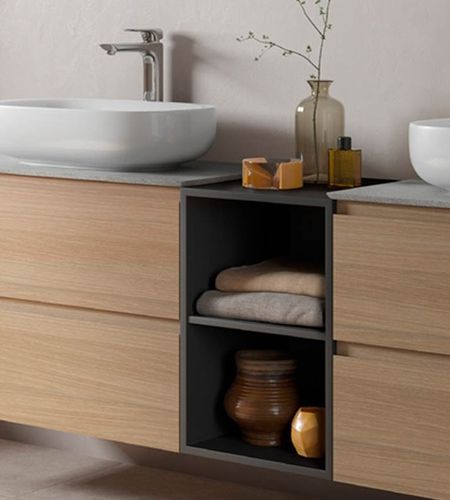 Rak-Joy Open Storage is the most beautiful, flexible and simple way to add a modular storage to your bathroom. Available in the dark grey color, it can be easily installed on both sides of your Rak-Joy vanity and it matches with all the Rak-Joy finishes, adding space efficiency as the need arises.
