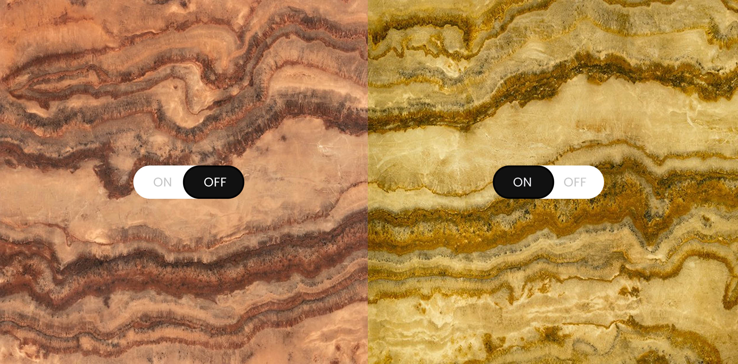 Light becomes a design tool in the hands of the designer and through elegant surfaces contributes to enrich special environments, making them magical. This is what makes the new Luce slabs a stunning centerpiece for your design concept and amaze when enhanced with backlighting technology. An absolute novelty that will inspire your creativity. 5 different graphics and colors in marble and onyx effect, tha t replicate the natural ability of the stones to filter the light. Hotels, restaurants, offices, shops and sophisticated residential environments. Light up your projects with Luce.