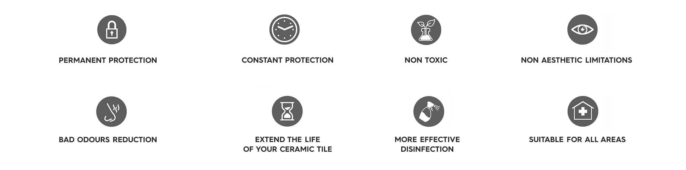 This specialised glaze is incorporated into the glaze on the tile during the manufacturing process. The firing of the glaze into the tile at high temperatures creates a surface that inhabits the growth of microbes that come in contact with the tile.